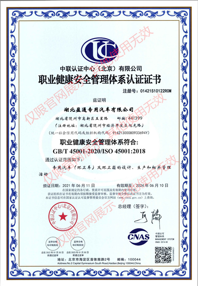 公司地址:湖北省隨州市高新區鐵北產業園文化公園北路57號 湖北盈通專用汽車有限公司