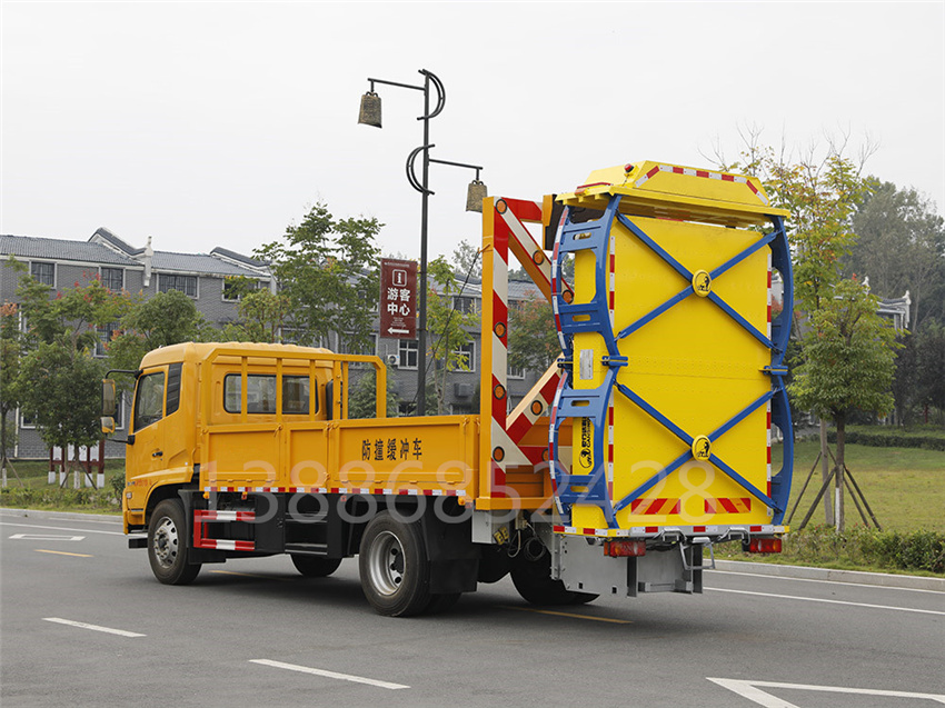 防撞緩沖車采用國六東風(fēng)天錦底盤。防撞緩沖模塊升降采用液壓控制,過程平穩(wěn)、安全、機械化作業(yè)程度高,操作方便。防撞緩沖模塊整體采用國產(chǎn)乾行達公司技術(shù)產(chǎn)品100E防撞緩沖模塊,太平洋保險承保。適用于城市道路,郊區(qū)道路,高速公路,機場橋涵等場合。主要功用:置于道路施工作業(yè)人員和設(shè) 備后方,在發(fā)生追尾事故中充當(dāng)肇事車輛和施工作業(yè)人員或設(shè)備的緩沖區(qū)域,并且通過自身結(jié)構(gòu)變形吸收撞 擊能量,最大限度的降低施工人員或設(shè)備發(fā)生危險的幾率,同時最大限度的降低肇事車輛及人員的危險。