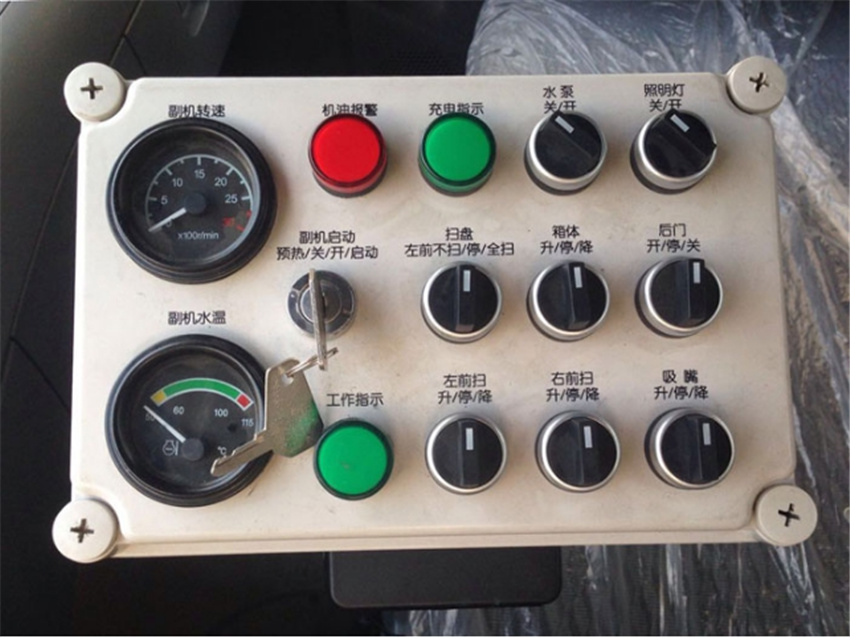 9,一鍵PLC操作控制面板設(shè)計(jì),方便司機(jī)工作時,在駕駛室內(nèi)就可以完成吸盤的收放,水路控制,垃圾傾倒和垃圾箱回位操作。