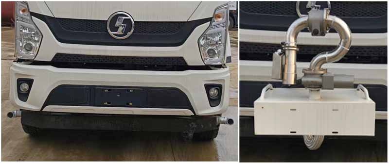 陜汽德龍灑水車,陜汽德龍15方霧炮車,國六陜汽德龍L3000霧炮車,CLT5189TDYSX6A型多功能抑塵車,該車用途為城鄉道路和鐵路礦場的抑塵降霾,主要裝置為罐體及噴霧裝置.罐體總容量:13.4立方米,罐體有效容積:12.76立方米;罐體外形尺寸(×長軸×短軸)(mm):4800×2450×1600.ABS系統生產廠家及型號分別為:西安正昌電子股份有限公司,型號ZQFB-V.側、后防護材料均為:Q235碳鋼,連接方式均為:螺栓連接,后部防護截面尺寸(mm):120×50,后部防護離地高度(mm):470.僅采用底盤4500mm軸距改裝.選裝前部不帶電子霧炮,選裝前部電子霧炮樣式.當前部不帶電子霧炮時,車輛長度8650mm,無前伸;當前部選裝電子霧炮時,車輛長度9150mm,前伸500mm.