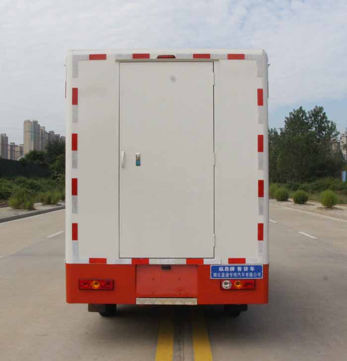 福田祥菱V藍牌售貨車|CLT5030XSHBJ6型售貨車|藍牌移動售貨車|移動售貨車,專用功能及裝置:貨廂裝備有售貨窗口,售貨貨架等專用設施;車廂頂部封閉且不可開啟;ABS系統(tǒng)控制方式是雙參數(shù)控制,ABS系統(tǒng)控制器型號是YF9,ABS系統(tǒng)控制器生產企業(yè)是武漢元豐汽車電控系統(tǒng)有限公司,ABS系統(tǒng)控制器型號YC-ABS-L,ABS系統(tǒng)控制器生產廠家天津英創(chuàng)匯智汽車技術有限公司.發(fā)動機與油耗申報值(L/100km)對應關系為:DAM15KR/8.1,DAM16KR/7.5;發(fā)動機DAM15KR,DAM16KR分別對應的最大凈功率為80kW,85kW,分別對應最高車速100km/h,110km/h.整車外形長/軸距/前懸/后懸對應關系(mm):4840/3070/605(615)/1165(1155),5040/3070/605(615)/1365(1355),5100/3070/605(615)/1425(1415),5200/3170/605(615)/1425(1415),5250/3170/605(615)/1475(1465);隨底盤選裝不帶前霧燈,選裝帶前霧燈,選裝新前格柵,選裝帶晝行燈,選裝不帶霧燈晝行燈.選裝直接供電式ETC車載裝置;該車型整備質量包含備胎和隨車工具;貨廂質量為:800kg;貨箱材質/厚度為:鋁花紋板/1.5mm(底板),彩鋼板/0.8mm+泡沫板/50mm,(前墻板,左墻板,右墻板,后門,頂板). |