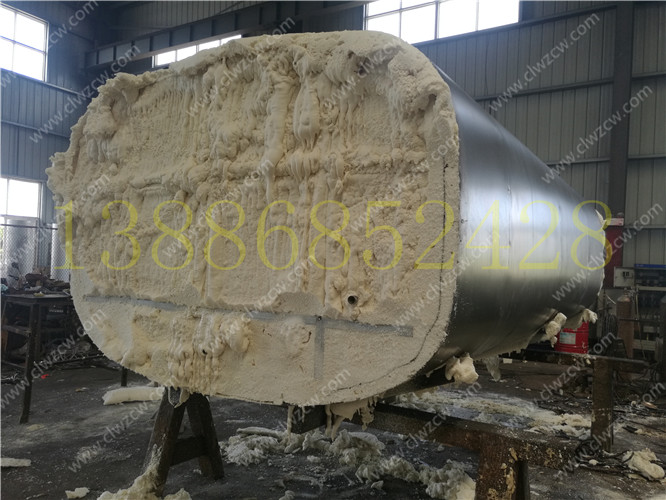 保溫層在制作上主要是在罐體外部先焊接一個支撐骨架,其厚度一般為100mm,然后再用保溫材料把骨架填充滿。在保溫材料的選擇上我們一般考慮導熱系數(shù)小,耐高溫,質量輕,吸聲性能好,絕緣性和化學穩(wěn)定性好的硬質聚氨酷泡沫塑料或巖棉。然后需要對填充的保溫材料進行修正,最后在骨架上撞上蒙板,蒙板一般使用厚度為lmm的冷軋板。