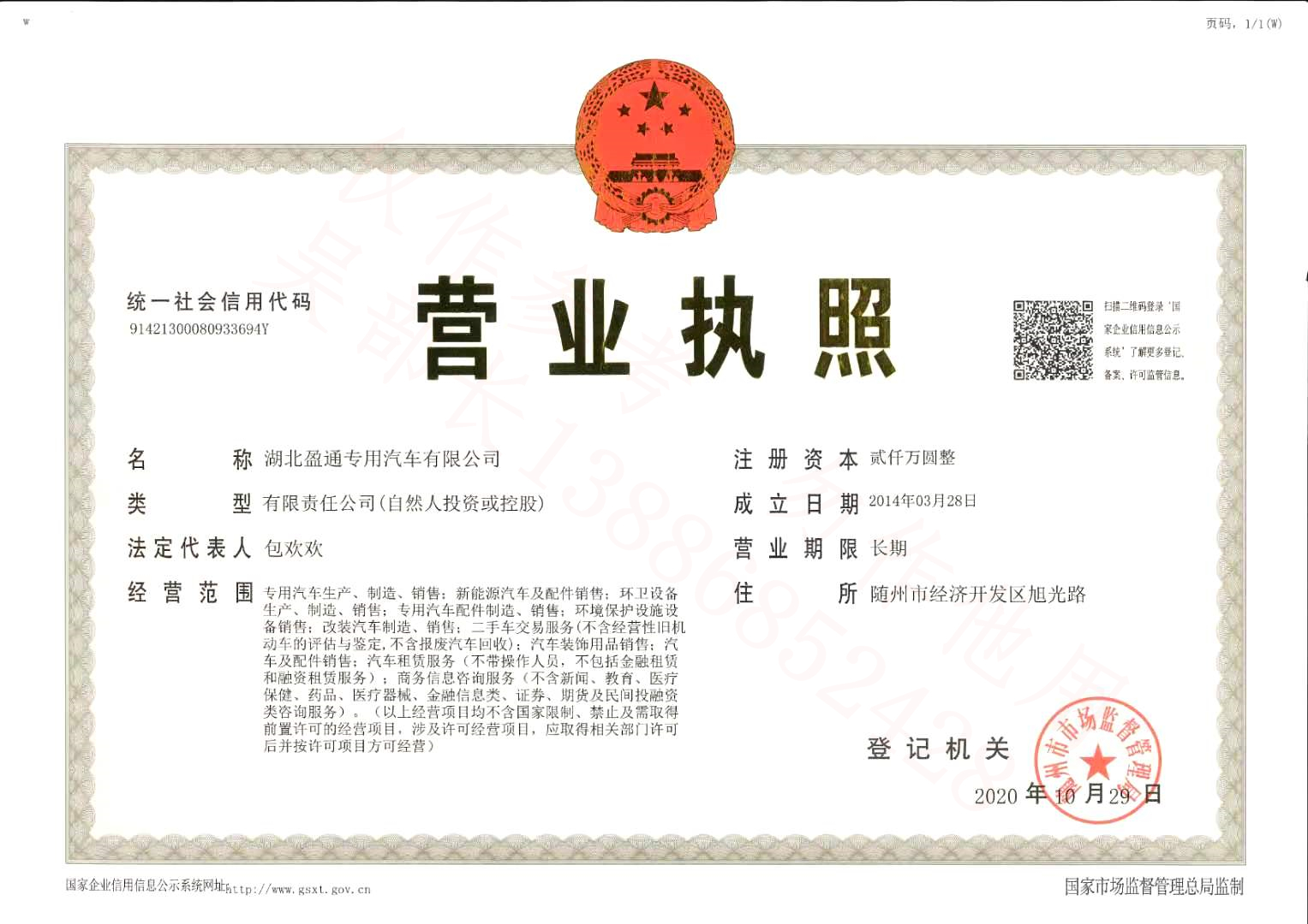 公司地址:湖北省隨州市高新區鐵北產業園文化公園北路57號 湖北盈通專用汽車有限公司