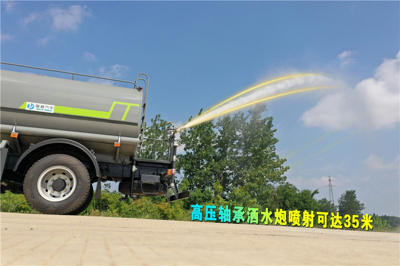 東風(fēng)華神F5灑水車。罐體實際容積12立方米,采用優(yōu)質(zhì)碳鋼板卷壓成型。配備盈通專用灑水泵,前噴鴨嘴、側(cè)噴、后工作平臺及灑水高壓炮。華神玉柴165灑水車,灑水泵自吸高度為6米左右,灑水寬度14米左右,灑水炮射程28米左右,后工作平臺水炮可調(diào)成:直沖狀、大雨、中雨、小雨、毛毛雨,整車帶消防接頭、自流閥及自吸功能