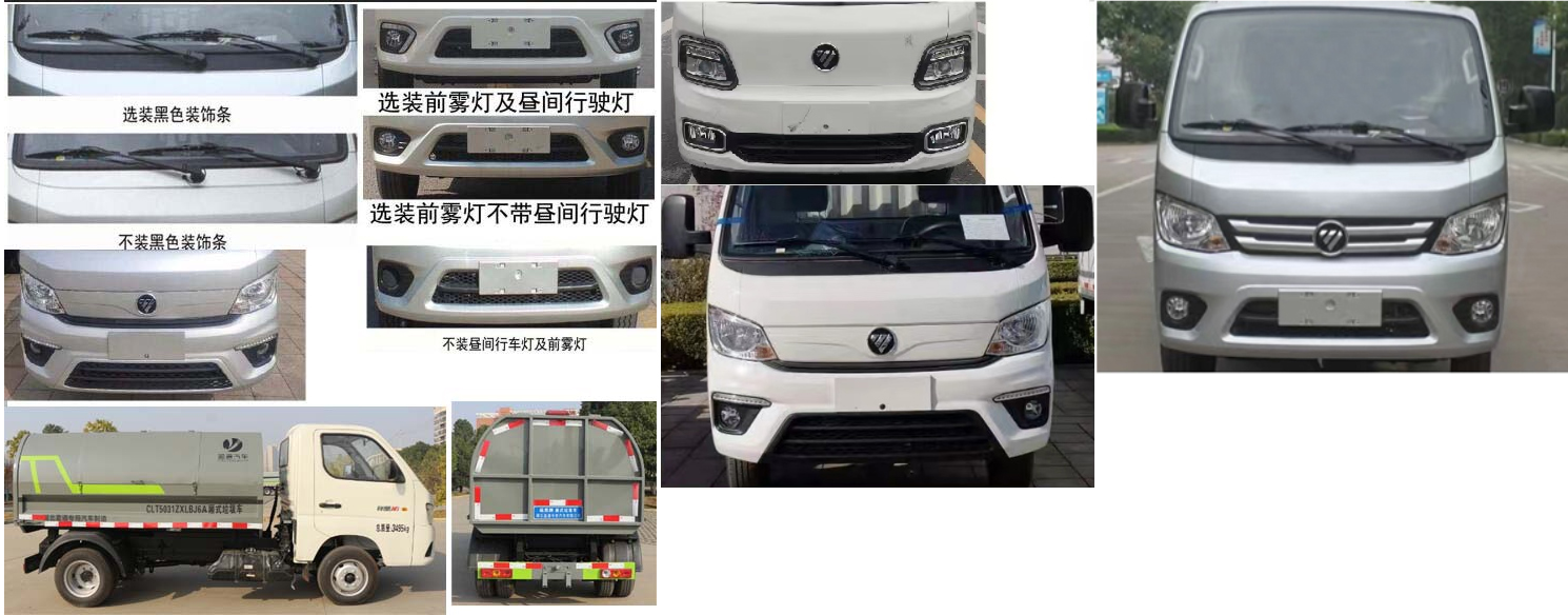 福田垃圾車,廂式卸式垃圾車,祥菱自裝自卸式垃圾車,掛桶式垃圾車,該車專用裝置為箱體、液壓控制系統等,主要用于實現垃圾的裝載和轉運卸料作業;ABS系統控制器型號是YF9,ABS系統控制器生產企業是武漢元豐汽車電控系統有限公司.發動機與油耗申報值(L/100km)對應關系為:DAM15KL/8.1,DAM16KL/7.5.發動機DAM15KL,DAM16KL對應的最大凈功率分別為80kW,85kW,分別對應最高車速100km/h,110km/h.該車可選裝直接供電式ETC車載裝置.隨底盤選裝帶前霧燈不帶晝間行駛燈造型,選裝不帶前霧燈及晝間行駛燈造型,可選裝黑色裝飾條,可選裝不帶黑色裝飾條.該車型整備質量包含隨車工具,不包含備胎、滅火器.貨箱質量與整備質量對應關系為(mm):580/1800,475/1700;貨箱材質:Q235;底板厚度:3mm,左右前后側板厚度:2mm.車長/軸距/后懸對應關系為(mm):4400/2400/925,4600/2750/775.選裝廂體樣式.