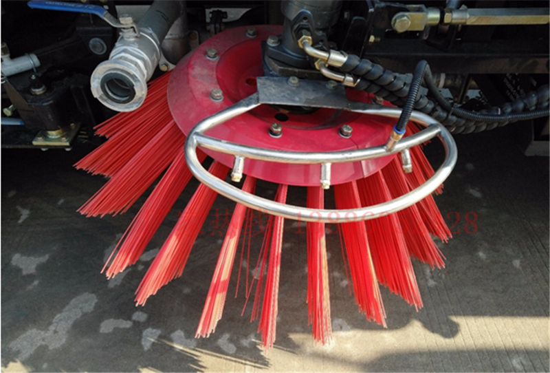 14、左右立掃為單掃盤,減少了掃刷的數量和掃刷消耗量,能降低使用成本。掃刷上加裝噴水裝置,用于噴霧降塵。左右立掃分開控制,可實現右掃和全掃等不同的作業模式。
