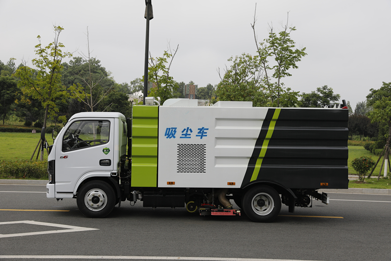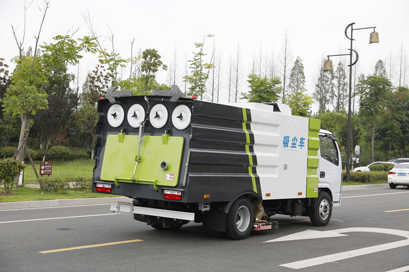 吸塵車垃圾箱上端裝有過濾系統和除塵