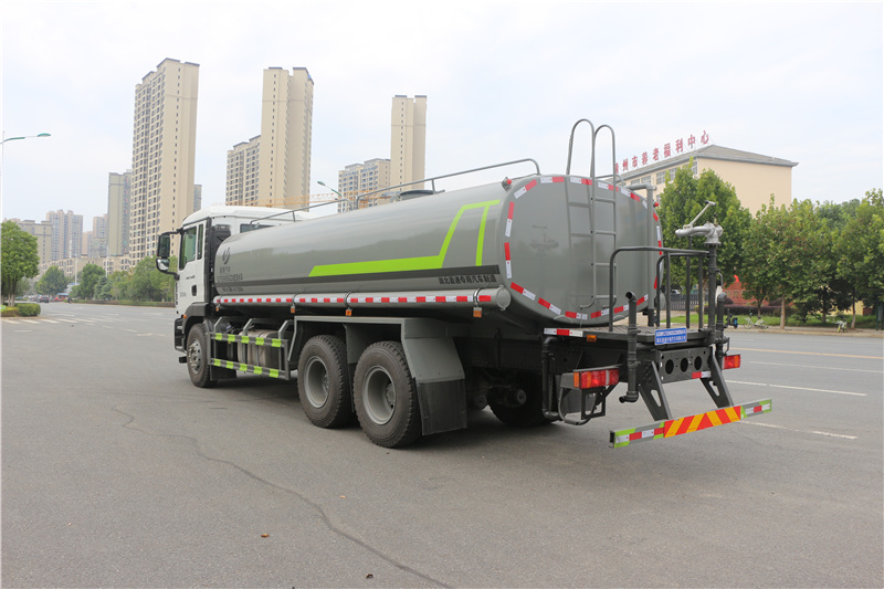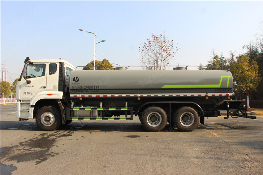 重汽豪瀚灑水車_浩瀚NX后雙橋灑水車_重汽曼310灑水車_浩瀚NX23方灑水車,該車主要用于城鄉園林綠化噴灑;主要裝置為罐體及噴灑裝置;罐體總容量:14.81立方米;罐體有效容積:14.11立方米;罐體外形尺寸(×長軸×短軸)(mm):6800×2390×1620;側、后防護材料均為:Q235,連接方式均為:螺栓連接,后部防護截面尺寸(mm):120×50,后部防護離地高度(mm):490;ABS型號:446 004 6300;ABS生產企業:采埃孚商用車系統(青島)有限公司.選裝EBS,EBS系統控制器生產企業:采埃孚商用車系統(青島)有限公司司,型號:EBS3.隨底盤選裝限速裝置;限速裝置限速(km/h):89;僅采用4325+1350mm軸距改裝.隨底盤選裝駕駛室,選裝噴霧裝置樣式;選裝水炮支架位置,選裝弧形噴灑裝置,選裝箭頭燈裝置,選裝高位花灑管道樣式,選裝自動球閥安裝位置,選裝擋泥板樣式.