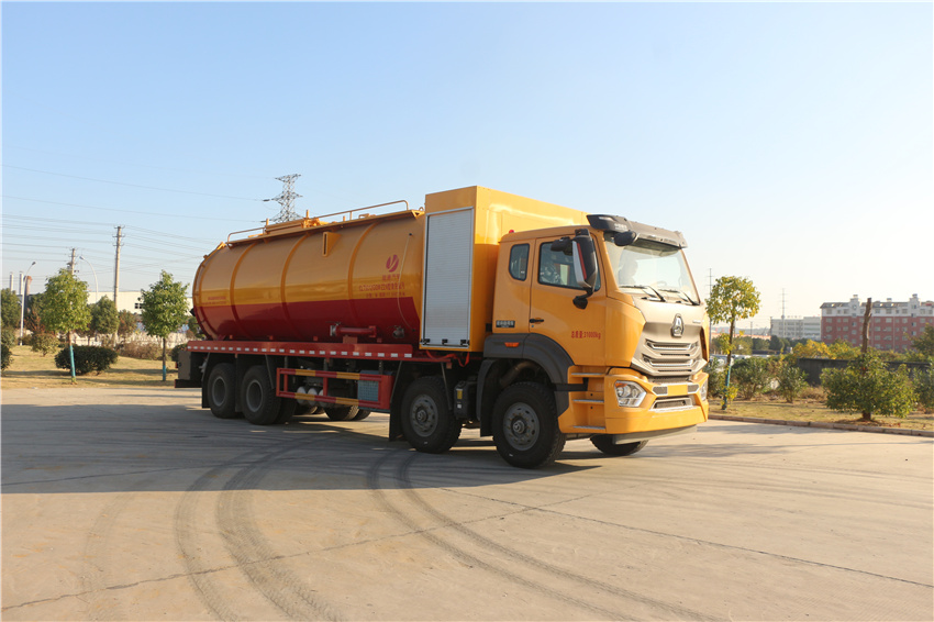 重汽35方清洗吸污車,豪沃35方疏通吸污車,管道疏通車,市政下水道清理車,高壓清洗吸污車,該車專用裝置主要為污水罐和清水罐,用于下水道吸污及疏通。隨底盤選裝駕駛室;罐體尺寸(直段長×直徑)(mm):7100×2350,其中罐體前端為清水罐(直段長3150mm);后端為污水罐(直段長3950mm)。兩罐獨(dú)立,且不能同時(shí)滿載。清洗功能時(shí)用清水罐,吸污功能時(shí)用污水罐。污水罐總?cè)萘?/span>14.57立方米,污水罐有效容積13.88立方米,介質(zhì):液態(tài)污物,密度:800千克/立方米;清水罐總?cè)萘?/span>11.66立方米,清水罐有效容積11.1立方米,介質(zhì):水,密度:1000千克/立方米。采用軸距(mm):1800+4600+1350,1800+4575+1400;側(cè)/后防護(hù)材料均為:Q235碳鋼,連接方式均為:螺栓連接,后部防護(hù)截面尺寸(mm):200×60,后部防護(hù)離地高度(mm):480;ABS系統(tǒng)型號為446 004 6300,生產(chǎn)企業(yè)為威伯科汽車控制系統(tǒng)(中國)有限公司。選裝EBS,EBS系統(tǒng)控制器生產(chǎn)企業(yè):威伯科汽車控制系統(tǒng)(中國)有限公司,型號:EBS3。選裝罐體頂部護(hù)欄樣式,選裝側(cè)面清洗管,選裝后罐口液壓開啟樣式,選裝后部閥門,選裝后部清洗管卷盤樣式。選裝前部不帶卷簾門保護(hù)箱.選裝尿素箱位置,選裝油浴式空濾器,,選裝左置電瓶箱,選裝大油箱,選裝雙腔大油箱,選裝消聲器及位置,選裝踏步,選裝前拖鉤。 |