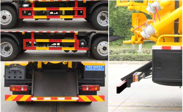 東風10方清洗吸污車,華神10方疏通吸污車,管道疏通車,市政下水道清理車,高壓清洗吸污車,該車用于下水道排污及疏通,專用裝置:罐體、吸污泵、清洗沖刷總成.該車輛具有舉升功能.罐體外形尺寸(罐體總長×直徑)(mm):4900×1750(前面1600mm為清水罐,后部3300mm為污水罐);污水罐總容量:7.04立方米,污水罐有效容積:6.7立方米,介質:液態污物,密度800千克/立方米;清水罐總容量:3.6 立方米,有效容積:3.6 立方米,介質:水,密度1000千克/立方米;清水罐和污水罐為獨立罐體,清洗功能時用清水罐,吸污功能時用污水罐,污水罐和清水罐不可同時滿載,兩罐不可同時使用.ABS型號及生產廠家為:3631010-C2000/東科克諾爾商用車制動系統(十堰)有限公司,J ABS/焦作博瑞克控制技術有限公司;側、后防護材料均為:Q235碳鋼,側防護采用螺栓連接,后防護采用焊接連接,后部防護截面尺寸(mm):120×50,后部防護離地高度(mm):450.隨底盤選裝駕駛室新風格裝飾件,隨底盤選裝油箱,尿素罐,電瓶框布置位置.選裝側面樣式,選裝后部出口樣式. |